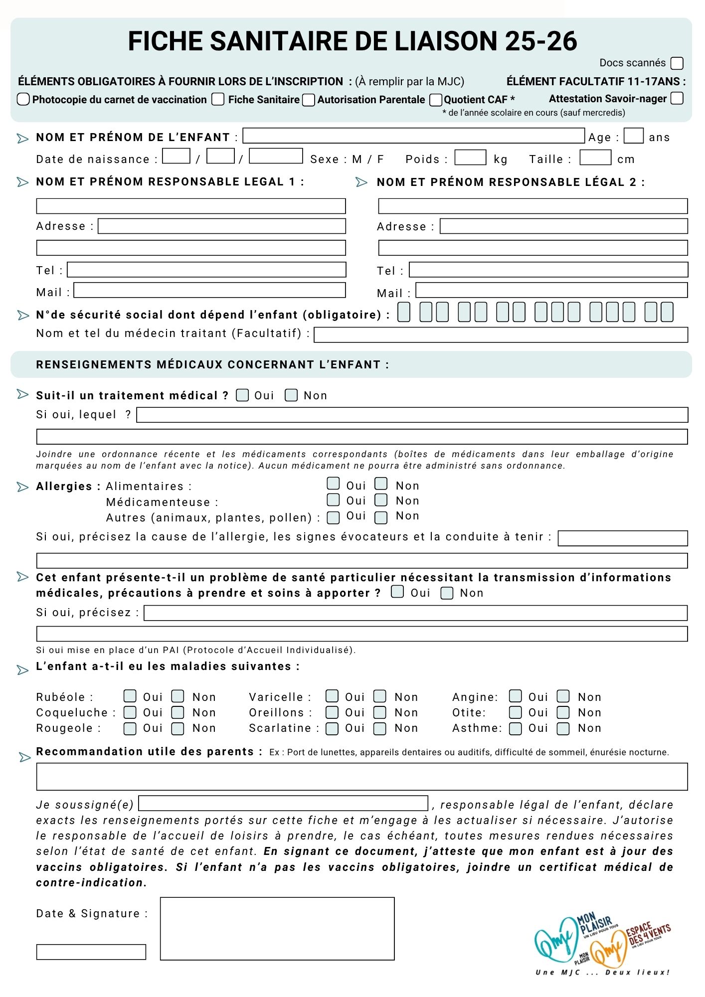 + Adhésion MJC obligatoire : 2,50 € / an